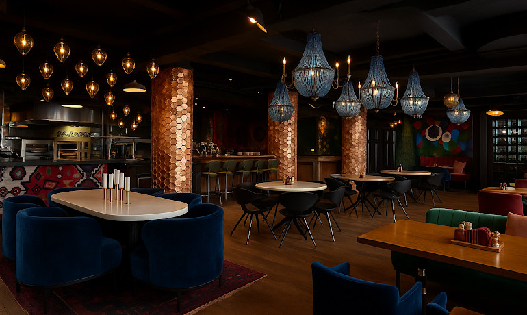 Ресторан «Сабли-Зубы» подходит для проведения закрытых мероприятий и бронирования столиков в общем зале.